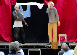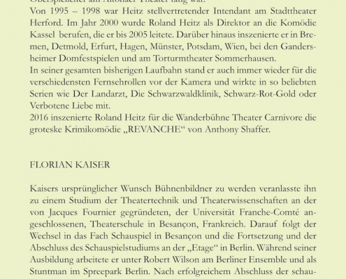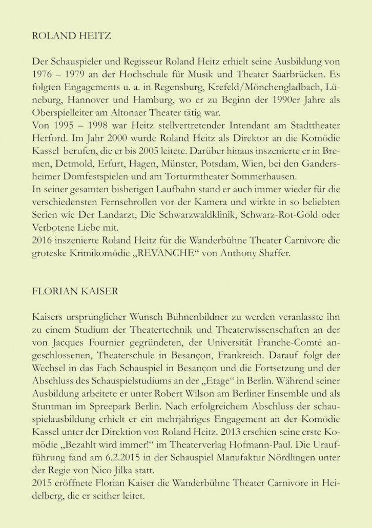 „…Mit bewundernswerter Spielleidenschaft und – laune und einer stupenden Wandlungsfähigkeit setzen Roland Heitz…und Florian Kaiser die Komik des Stückes um…“