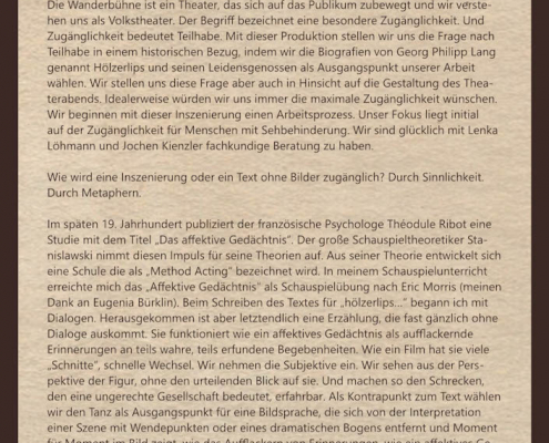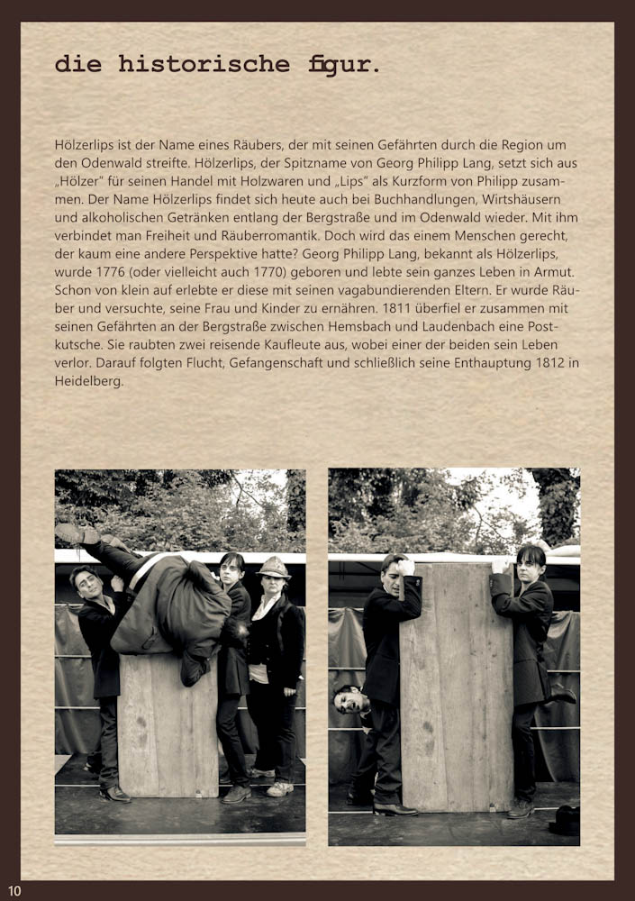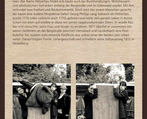 „…Wanderbühne zwischen Weinreben: Bei seinem Gastspiel…hat das…Theater Carnivore den Odenwälder Räuber Hölzerlips text- und bildintensiv in Szene gesetzt…“