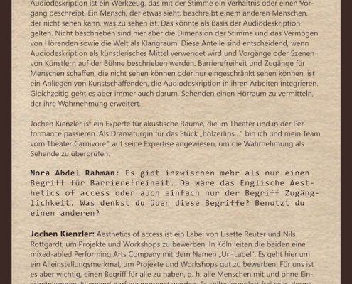 „…Auch Blinde und Sehbehinderte konnten über Audiodeskription an dem Abend teilnehmen…“