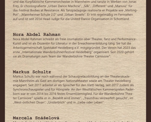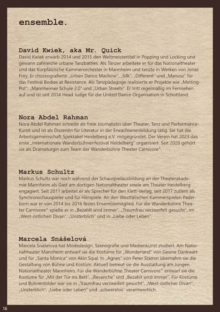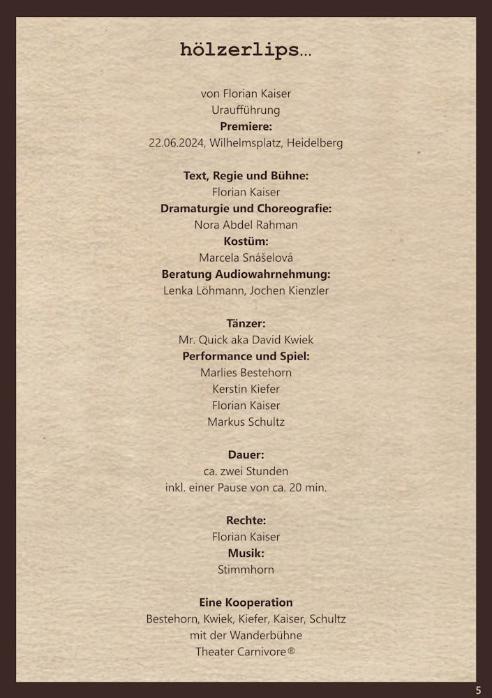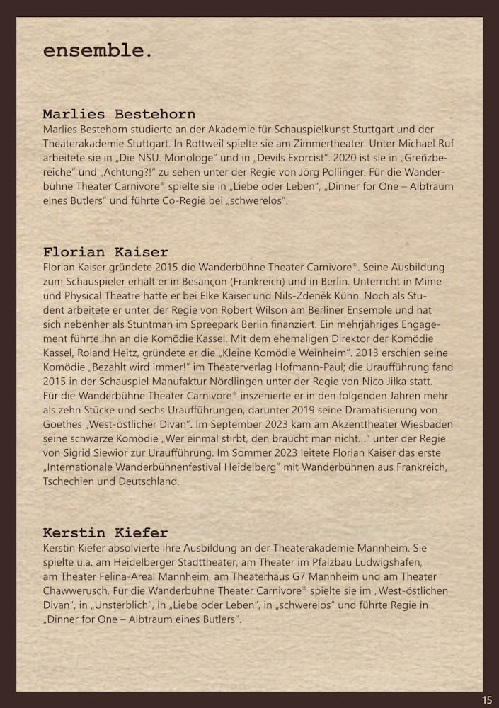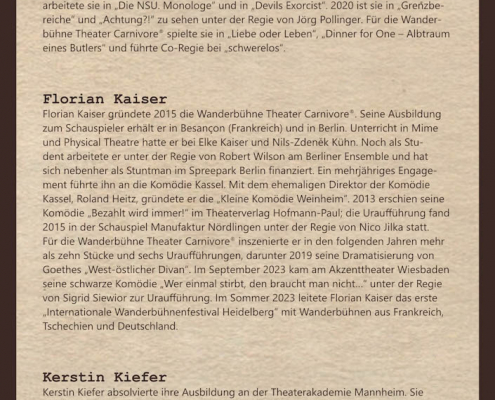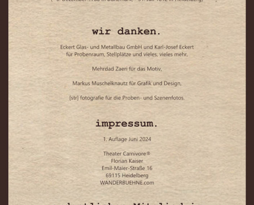 Eine Kooperation Bestehorn, Kaiser, Kiefer, Kwiek, Schultz mit der Wanderbühne Theater Carnivore®