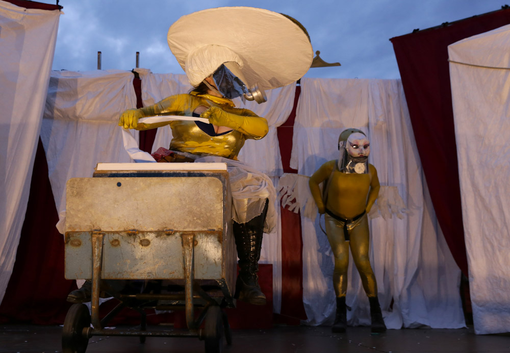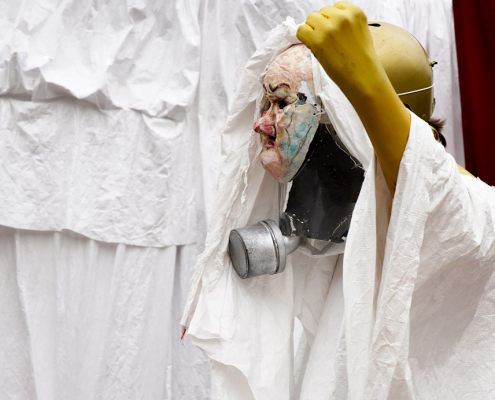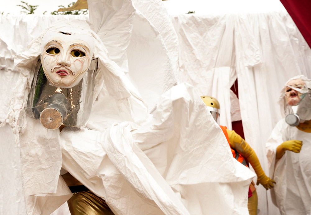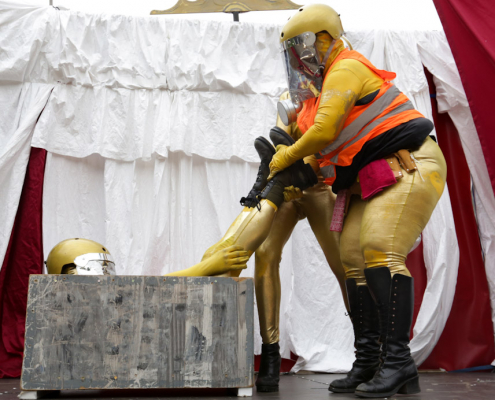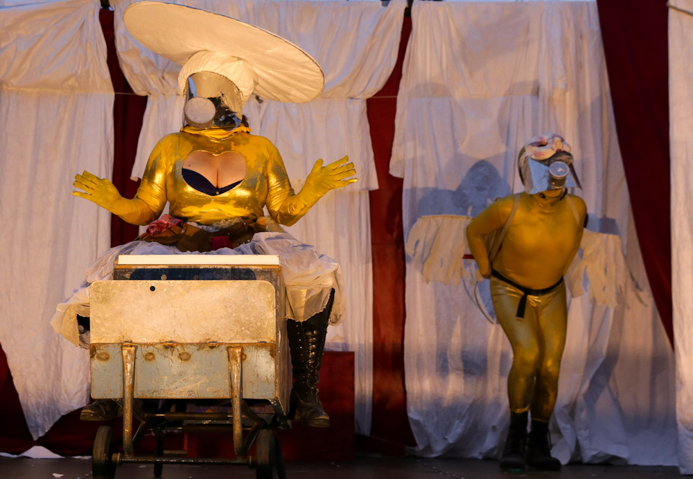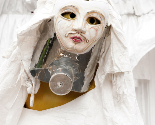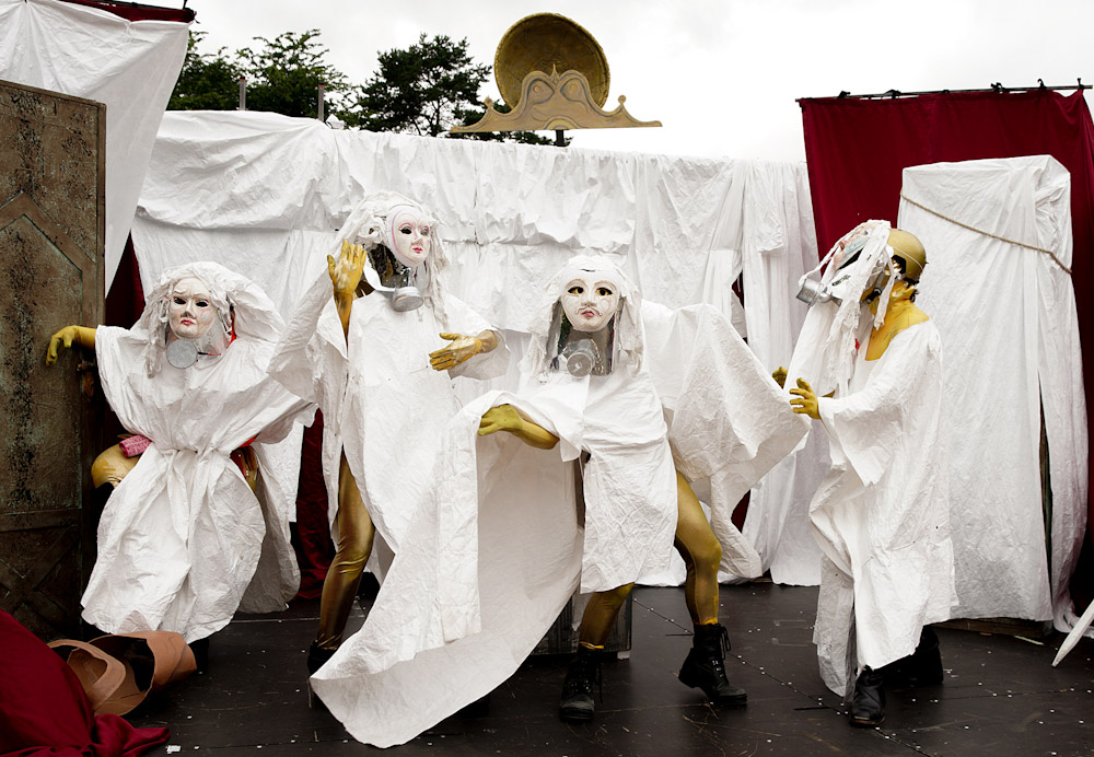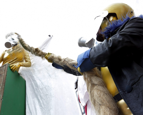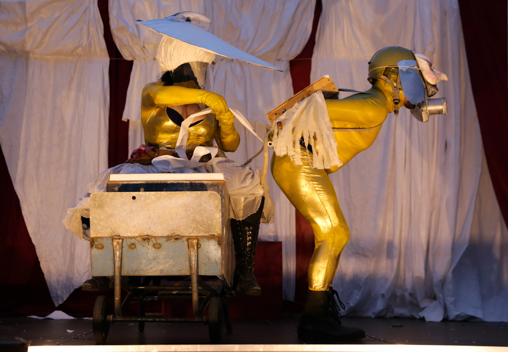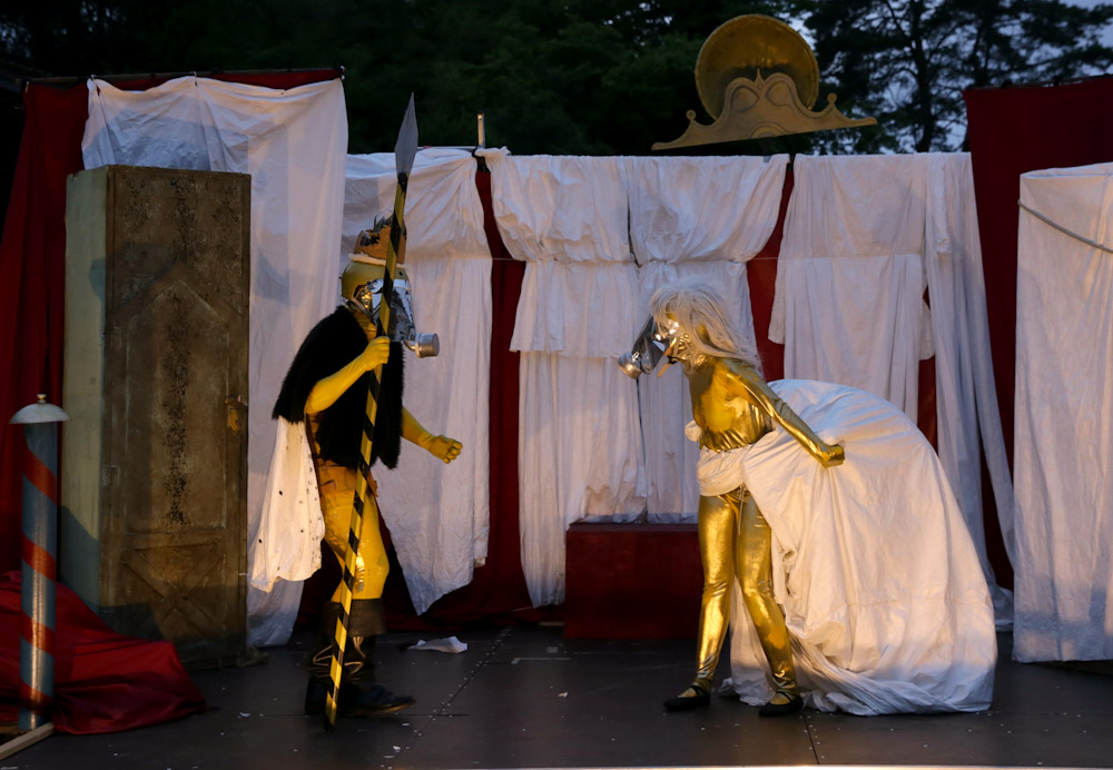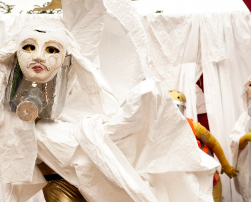 „…Florian Kaiser hat das Bühnengeschehen mit der aktuellen Pandemie verbunden und zugleich mit der Maskierung seiner Protagonisten die Pestmaskentradition der Commedia dell’Arte, gewissermaßen die DNA der Wanderbühne, aufgenommen…“