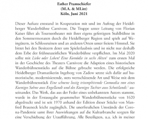 Jahnke, Manfred, „Commedia an einem lauen Sommerabend“, in: Die Deutsche Bühne, Online, Seite 2-4, vom: Samstag, 03.07.2021