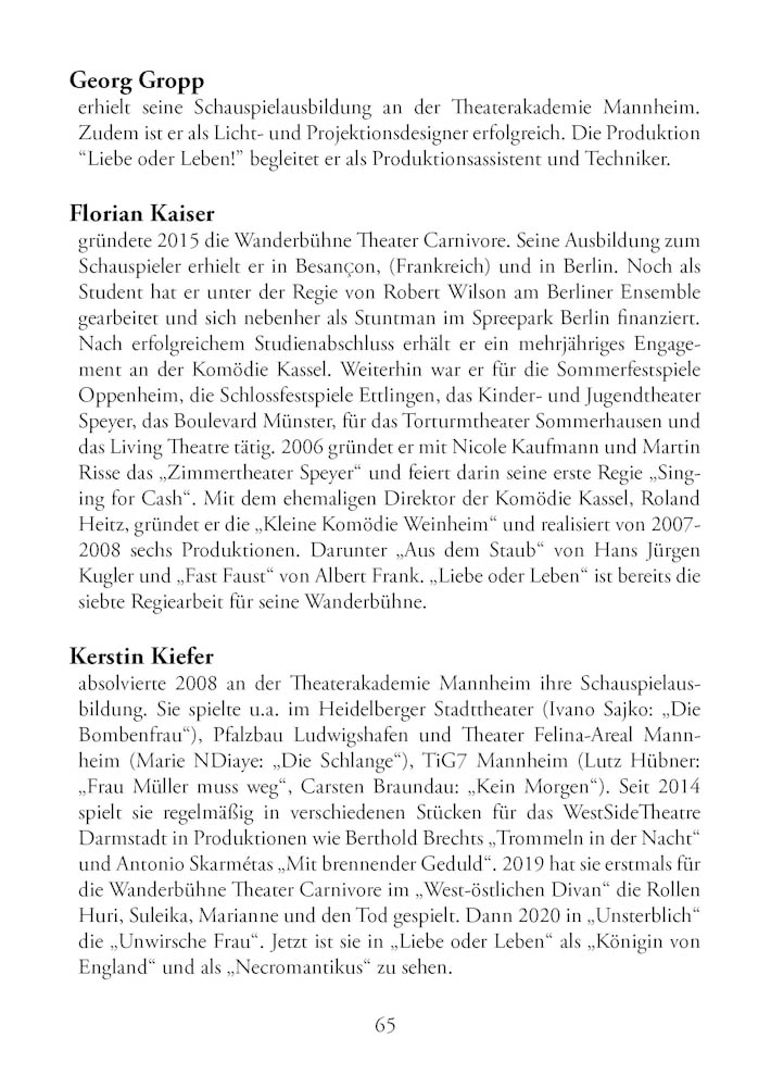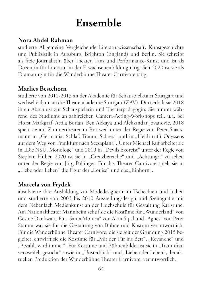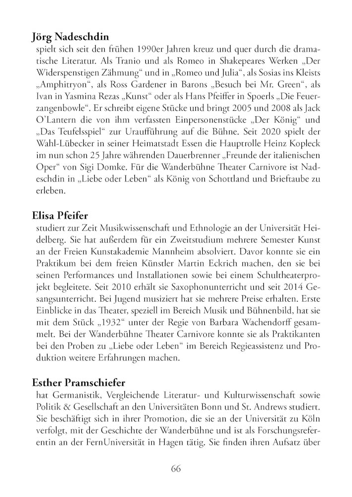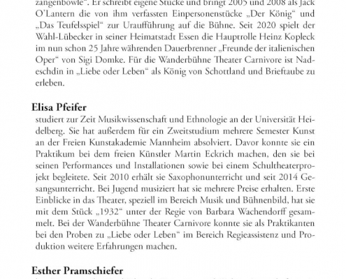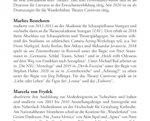 Theaterwissenschaftliche Begleitung: Esther Pramschiefer, Dr. rer. pol. Morticia Zschiesche